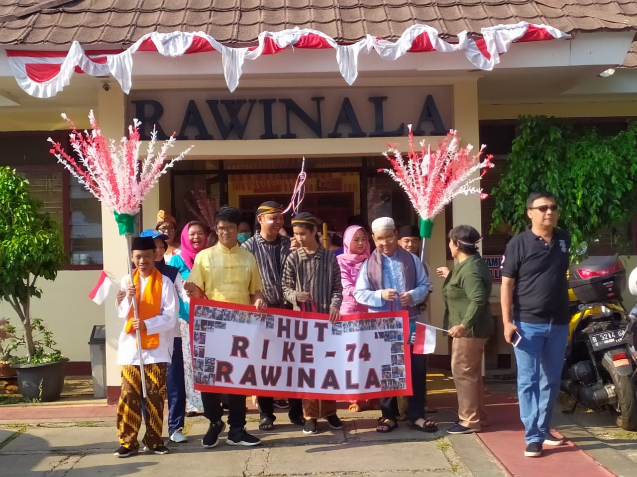 Anak-anak dan karyawan Rawinala melakukan kegiatan pawai dengan riang gembira. Dibalut dengan tema pakaian yang beraneka macam, kegiatan pawai semakin meriah dan semarak. Ada yang menggunakan pakaian adat Minangkabau, Betawi, Sumatera Utara, Tionghoa, Jawa, dan lain-lain. Ada pula yang mengenakan pakaian yang mencerminkan profesi, seperti Pegawai Negeri Sipil, instruktur senam, petani, dan sebagainya. Tidak lupa mereka juga membawa bendera dan mengibar-ngibarkannya di sepanjang kegiatan pawai.